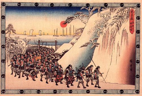- The tale of the 47 ronin is a literary trope and figures abundantly in plays. It has has entered Japanese folklore and as such it has been incorporated into numerous kabuki plays, performed as bunraku puppet shows for children, captured in paintings and woodblock prints, and later depicted in films and televisions shows. This enduring popularity demonstrates the value of this story as representative of values and attitudes that many people presume to have existed in Japan. However, the story does not represent contemporary behaviour and ways of thinking as only a small fraction of the samurai who could have joined this specific vendetta joined; most abstained. This is crucial: there was a big gap between ideal representations and actual behaviour of samurai. More often than not samurai were self-interested and held little personal loyalty to their lords. The story highlights the double power structure of the warrior society: samurai were first obedient to their daimyô, not to the shogun – but they could not breach the laws of the bakufu without punishment.